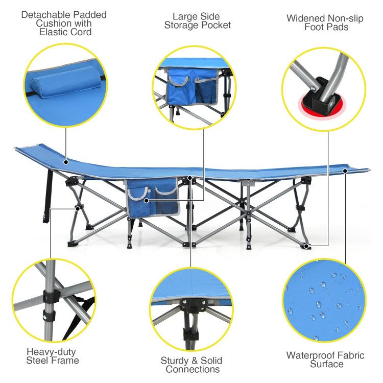 Home > Folding Camping Cot with Side Storage Pocket Detachable Headrest