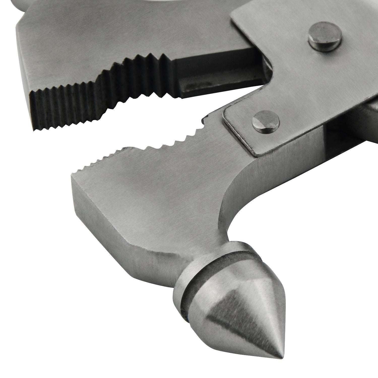 Swiss Army Style Emergency Tool for your Car; RV or your Boat. Thismulti functional rescue tool; can be used for rescue and self-help. Is a set of cut; pointed and flat hammer; lever and other functions as one of the portable hand tools. You break through a Sheetrock wall or break out of a Glass window or windshield in a car. It can cut plastic hardest plastic ties and can saw through a wood or a tree branch. It has set of pliers and screwdriver and multiple knives. This multi-functionaltool does not need any batteries and made from hardenedsteel with insulated wood handle.